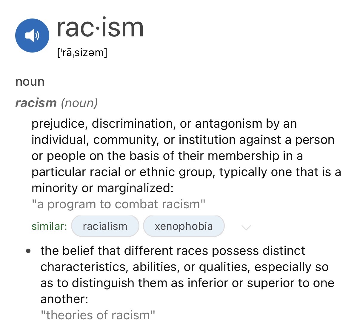 I know most of you guys aren’t great with defining basic things, but racism? The very name is a giant clue lol. Race-ism. Race-ism.