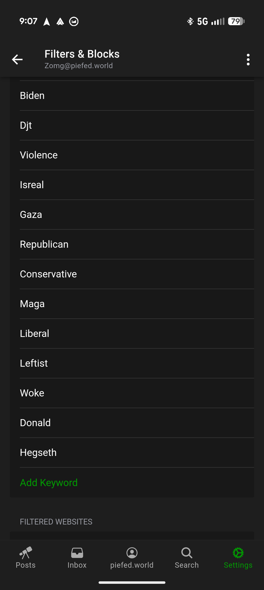 Works well for Lemmy (Boost app is great for blocking keywords). It has been really good for me to do this in my news RSS app as well. It has been great to break away from the endless cycle of Trump sating shit to get everyone agitated and then chickening out. It's a much more peaceful life.